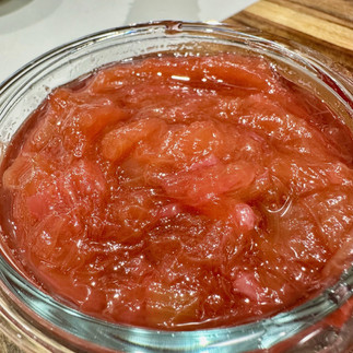 - The apple-sauce consistency left in the sieve is your rhubarb sauce. Store in a jar or Tupperware in the refrigerator.